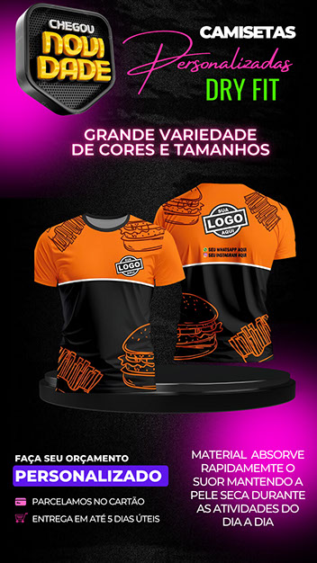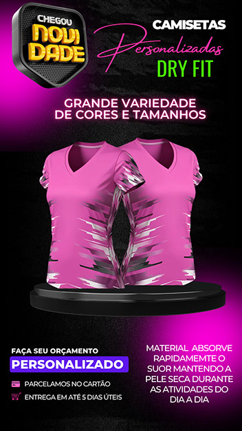 Atuamos com desenvolvimento de logomarcas, criação e venda de camisas DRY FIT personalizadas, cartões de visita, folders, artes gráficas e edição de vídeo para fortalecer a identidade visual da sua marca.